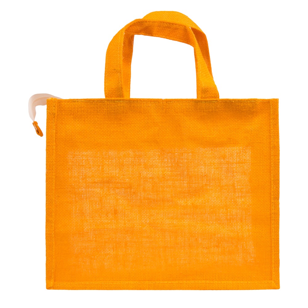14x12x5 inch Window Jute Hamper Bag – With Zip, Mustard, Self Handle